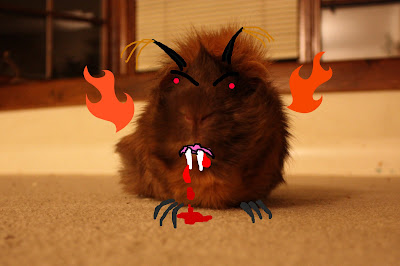 Alive, and yet, somehow not, the guinea pigs were no longer herbivores, but were now obviously carnivores, murderers of the worst sort, apt to do whatever it took to get a chunk of human flesh in their jaws. They're nasty at the best of times, so getting any closer to them was just asking for it. I was going to get Dee to deal with them, but at the last second, decided he was a bit too young to go near the knife Mo held.